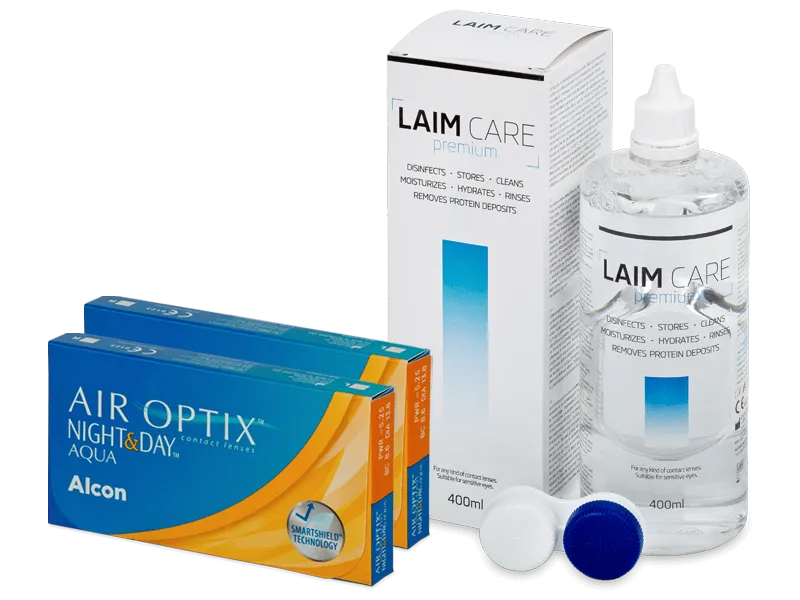 Air Optix Night and Day Aqua (2x3 lenses) + Laim Care Solution 400 ml